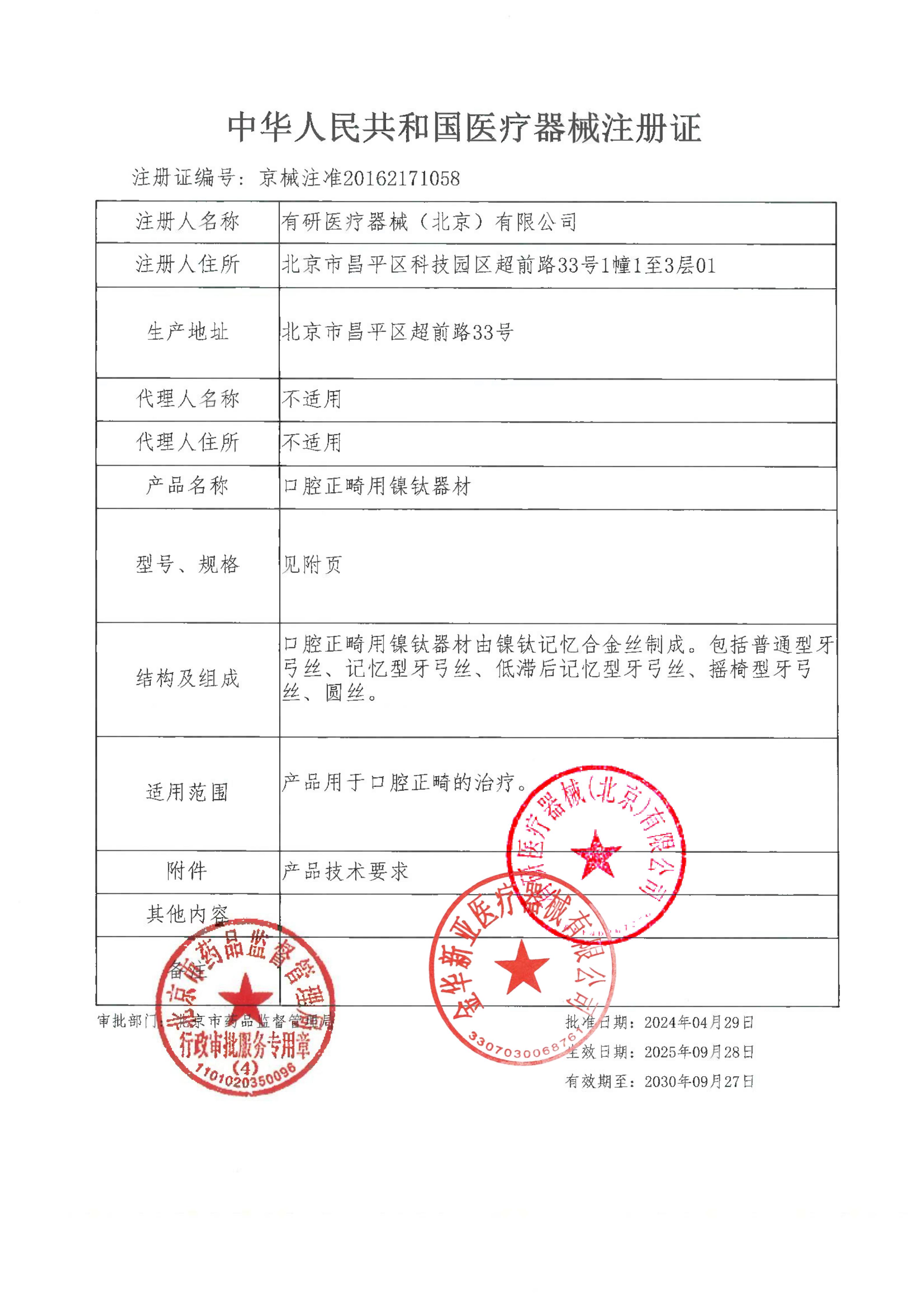 注册证号京械注准20162171058